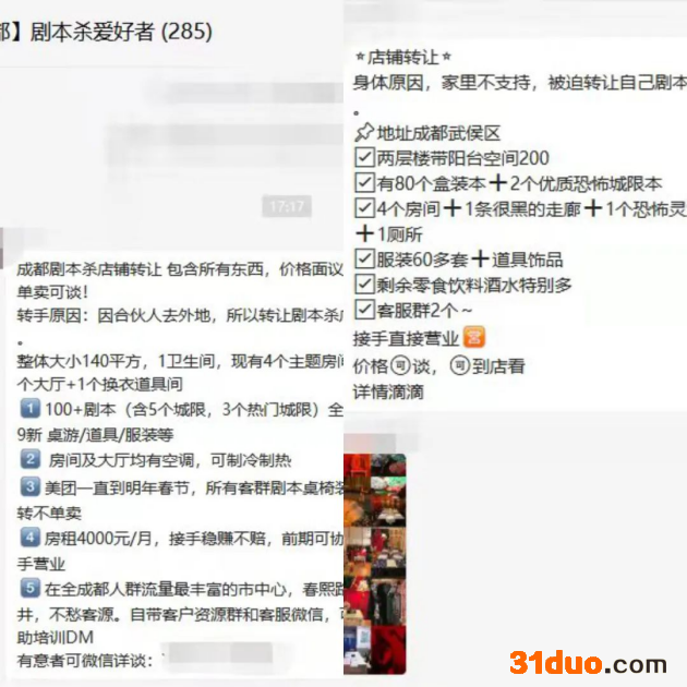 2021年,各个剧本杀玩家群里每天的拼单信息还应接不暇;到了2022年,出现在玩家群里的已经变成了“店铺转让”消息。