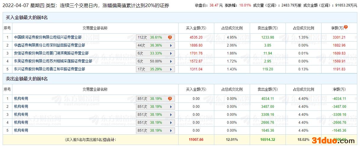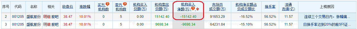 龙虎榜数据显示,作为连续三个交易日内,涨幅偏离值累计达到20%的证券,卖出盛航股份金额最大的前五名中,有5家机构专用席位。经统计,盛航股份的机构席位净卖出金额为15142.40万元。