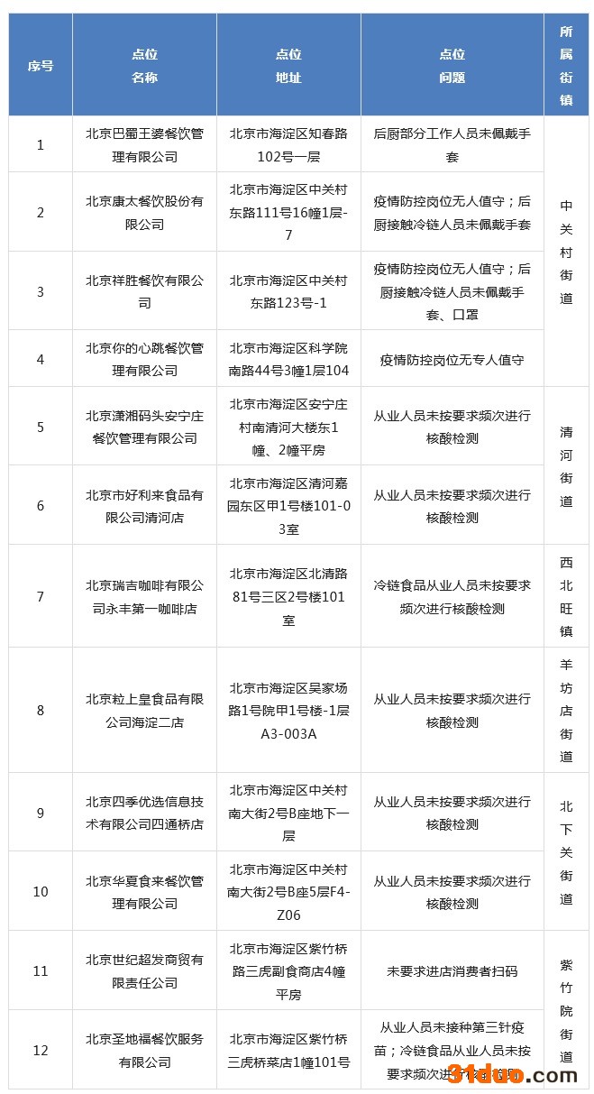 9.北京随意驿站餐饮有限公司,经营地址:北京市西城区西单北大街130号7层707号。未严格执行核酸检测。