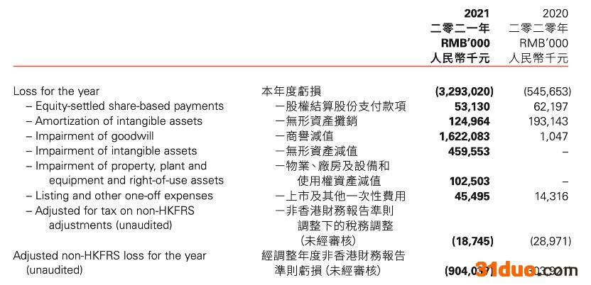 财报指出,巨额亏损的主要原因包括商誉减值、资产减值、上市及其他一次性费用增加等。其中,商誉减值16.22亿元、无形资产减值4.6亿元。