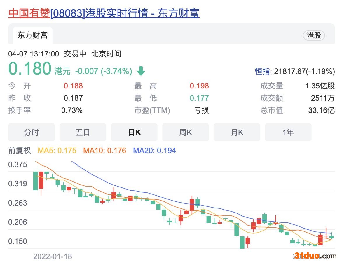 基本面与业绩的双重打击下,投资者也在加速逃离。3月25日巨额亏损警告后,中国有赞连跌数日,累计跌幅约20%。执行董事崔玉松紧急出手护价,3月31日、4月4日分别增持320万股、270万股,方才迎来久违翻红。但与2021年2月高点4.52港元/股相比,中国有赞股价已经跌去96%,不仅沦为“仙股”,市值也仅剩不到35亿港元。
