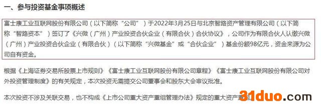 工业富联参与设立兴微基金公告节选