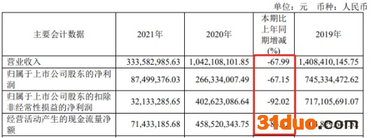 中国经济网北京4月7日讯 昨日晚间,灿勤科技(688182.SH)发布了上市后的首份年报。2021年,该公司实现营业收入3.34亿元,同比减少67.99%;实现归属于上市公司股东的净利润8749.94万元,同比减少67.15%;实现归属于上市公司股东的扣除非经常性损益的净利润3213.33万元,同比减少92.02%;经营活动产生的现金流量净额7143.32万元,同比减少84.42%。
