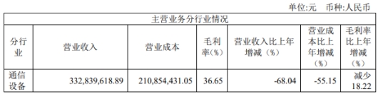2021年,灿勤科技主营业务毛利率为36.65%,比上年同期减少18.22个百分点。灿勤科技表示,报告期内,主要产品陶瓷介质滤波器的产销量大幅减少,生产的规模效应降低,导致产品单位制造费用大幅增加、单位生产成本上升明显,并进一步拉低了本期主营业务毛利率水平。