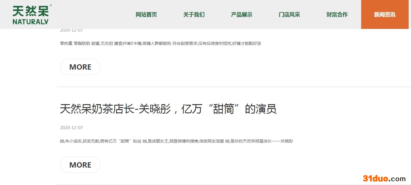 在天然呆奶茶官网上,关晓彤的称呼是“天然呆奶茶店长”。