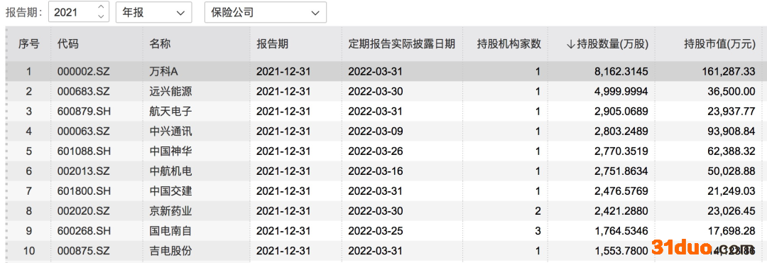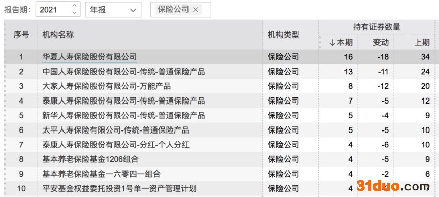 随着2021年上市公司年报披露,险资持仓情况也浮出水面。截至4月7日,共有102家保险机构及其产品出现在已披露2021年年报的上市公司股东名单中。