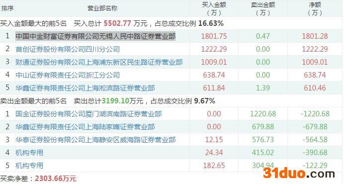 4月7日龙虎榜数据显示,中国中金财富证券有限公司无锡人民中路证券营业部等多路游资买入5502.77万元。