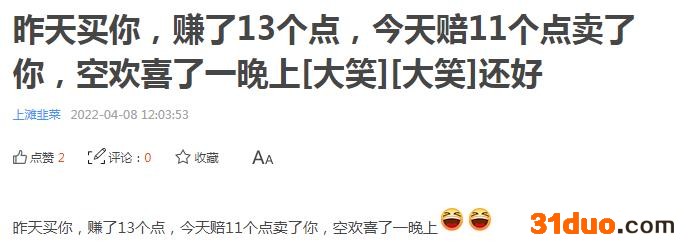 面对大涨大跌的情况,也有投资者不看好后市,挥刀清仓。“昨天买你,赚了13个点,今天赔11个点卖了你,空欢喜了一晚上”。