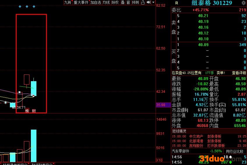 4月8日,纽泰格尾盘直接趴在了跌停板上。截止收盘,公司股价报收于40.09元,下跌幅度为20%,总成交额为4.92亿元,换手率为55.81%,公司总市值为32.07亿元。