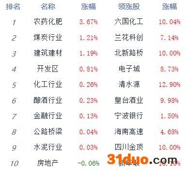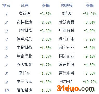 A股市场板块及个股涨跌幅排行