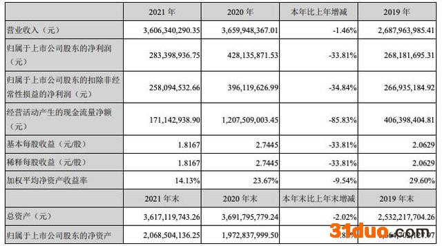 中华网财经讯,4月8日,小熊电器披露2021年年度业绩报告,实现营业收入36.06亿元,同比下降1.46%;归母净利润2.83亿元,同比下降33.81%;基本每股收益1.8167元;拟每10股派发现金红利6元。