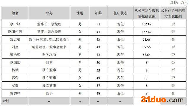 薪酬方面,小熊电器共有员工4013人,2021年薪酬总额为4.11亿元,人均薪酬10.24万元。共有高管10人,薪酬总额为518.12万元,平均薪酬为51.81万元,约为员工平均薪酬的5倍。其中,董事长李一峰薪酬为162.82万元,为最高薪,2020年薪酬为141.08万元,同比上涨15.41%;副总经理欧阳桂蓉次之,薪酬为132.42万元,2020年薪酬为96.73万元,同比上涨36.9%。