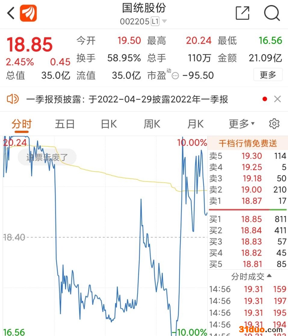 4月13日,国统股份在一个交易日内奇迹般地轮番上演了“天地板”和“地天板”,股价在跌停和涨停间不断切换。