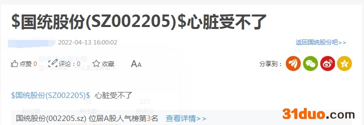 股吧里,国统股份投资者们直呼:“心脏受不了。”