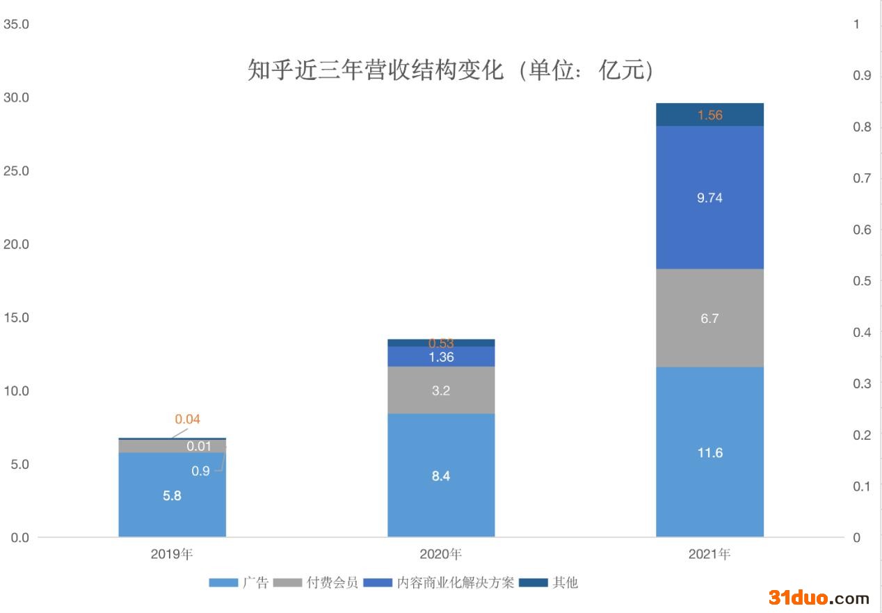 这是因为付费会员服务和内容商业解决方案(在内容中植入推广或购买链接)开始逐年发力,解决了知乎靠一条腿走路的困境。