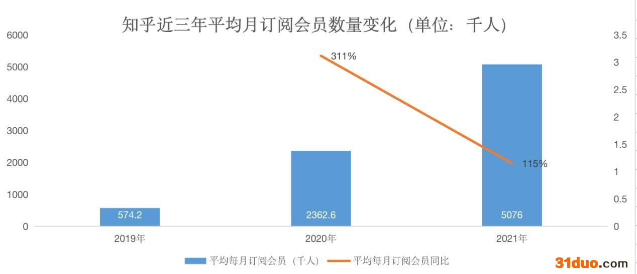 招股书显示,2021年,知乎的平均月订阅会员数量为507.6万人,较2020年增长115%。但是,较2020年的311%下滑了196个百分点。