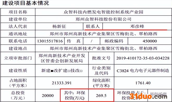 但据“众智科技产业园建设项目”子项目“众智科技内燃发电智能控制系统产业园”环评项目显示,该子项目环保投资达到269.5万元,超过整个项目的环保投入。不知众智科技招股说明书是否篡改募投数据?