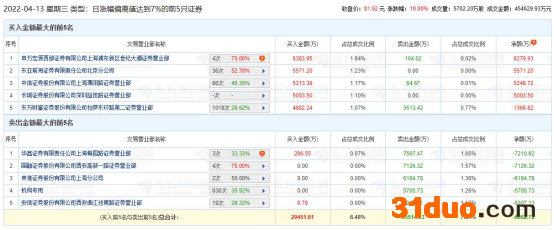龙虎榜数据显示,作为日涨幅偏离值达到7%的证券,买入九安医疗金额最大的前五名中,有1家机构专用席位。经统计,今日九安医疗的机构席位卖出净额为5705.73万元。
