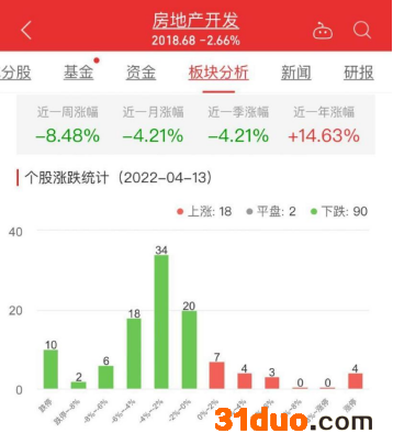 中国经济网北京4月13日讯 今日,房地产开发板块整体跌幅2.66%,其中18只股票上涨,2只股票平盘,90只股票下跌。