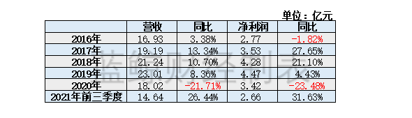 从近五年的业绩来看,2016-2019年伊力特的业绩基本是稳步向上的。2020年疫情开始,伊力特受到较大影响,营收净利润均双位数下滑。