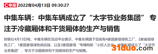 根据财联社电报,中集车辆在互动平台表示, 该公司成立“太字节业务集团”,专注于冷藏厢体和干货厢体的生产与销售,为中国冷链运输提供高品质的产品与服务。