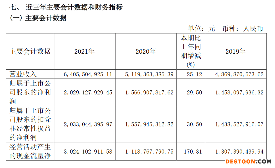 根据财报显示,报告期内,今世缘实现营业收入约64.06亿元,同比增长25.12%;实现归属于上市公司股东净利润约20.29亿元,同比增长29.50%;实现归属于上市公司股东的扣除非经常性损益的净利润约20.33亿元,同比增加30.50%。