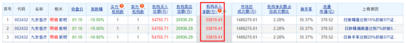 龙虎榜数据显示,买入九安医疗金额最大的前五名中,有2家机构专用席位;卖出九安医疗金额最大的前五名中,有1家机构专用席位。经统计,今日九安医疗的机构席位买入净额为33819.41万元。