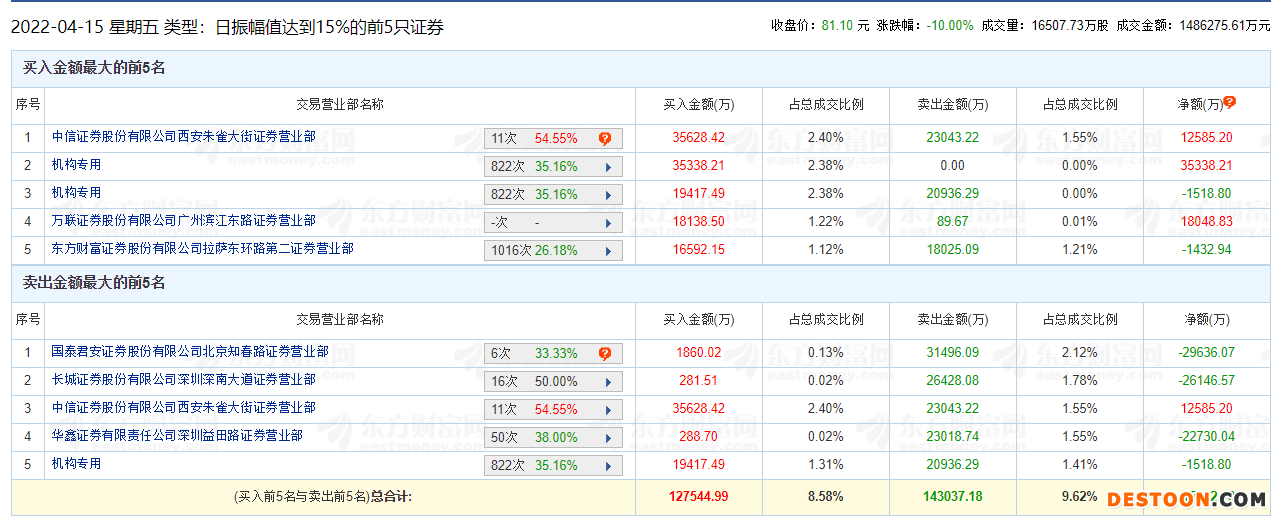 中国经济网北京4月15日讯 九安医疗(002432.SZ)今日跌停,截至收盘报81.10元,跌幅10.00%。