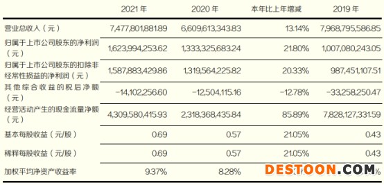 2021年,东北证券基本每股收益0.69元/股,比上年同期增长21.05%;加权平均净资产收益率9.37%,较上年同期增加1.09个百分点。