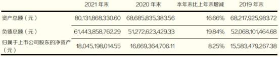 截至2021年末,东北证券资产总额801.32亿元,同比增长16.66%;负债总额614.44亿元,同比增长19.84%;资产负债率为68.94%,较上年同期增加1.91个百分点。