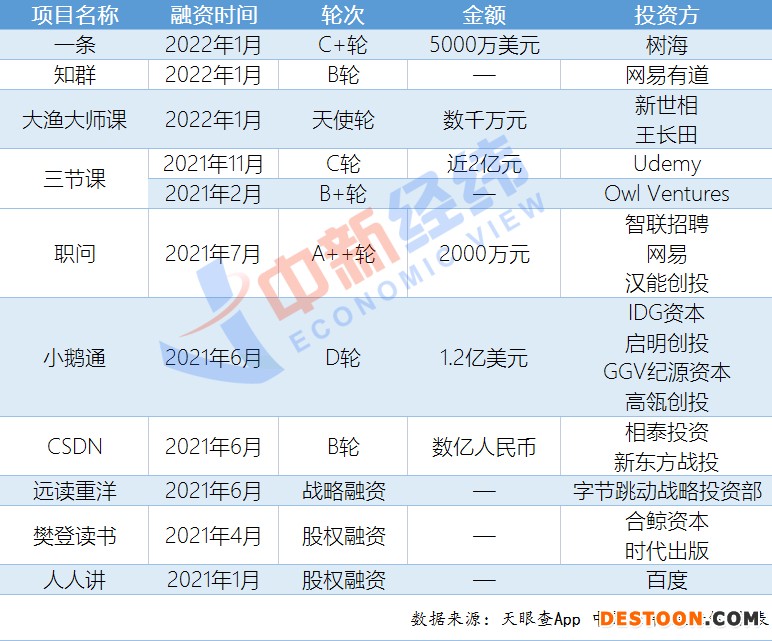 近年知识付费领域部分融资事件