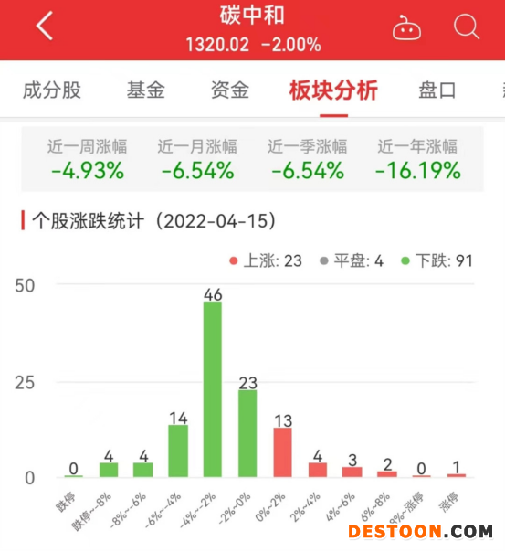 中国经济网北京4月15日讯 今日,碳中和板块整体跌幅2.00%,其中23只股票上涨,4只股票平盘,91只股票下跌。