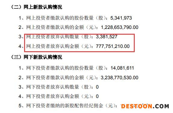 认购情况显示,网下投资者全额认购,而网上投资者放弃认购数量338.1527万股,弃购金额约7.78亿元。值得注意的是,按照比例计算,网上投资者弃购比例近四成。据悉,网下和网上投资者放弃认购的股份全部由保荐机构(主承销商)也就是光大证券包销。
