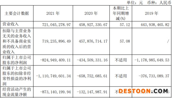 中国经济网北京4月18日讯 4月15日晚间,寒武纪(688256.SH)披露了2021年年度报告。2021年,寒武纪实现营业收入7.21亿元,同比增长57.12%;归属于上市公司股东的净利润-8.25亿元,上年同期为-4.35亿元;归属于上市公司股东的扣除非经常性损益的净利润-11.11亿元,上年同期为-6.59亿元;经营活动产生的现金流量净额-8.73亿元,上年同期为-1.32亿元。