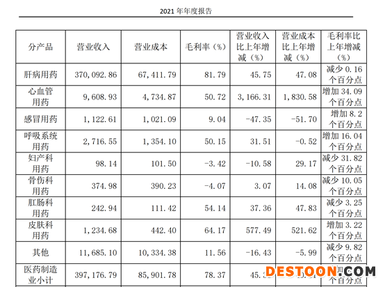 不过,肝病用药在2021年度的毛利率出现了略微的下滑,同比减少了约0.16个百分点。