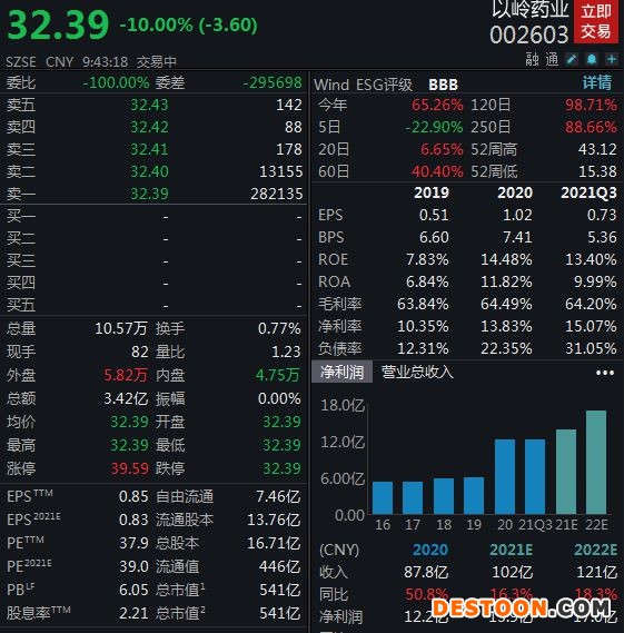 中新经纬4月18日电 4月18日,以岭药业开盘跌停,连续两日跌停。截至发稿,以岭药业股价报32.39元/股,换手率0.77%,卖一封单超28万手,总市值541亿元。