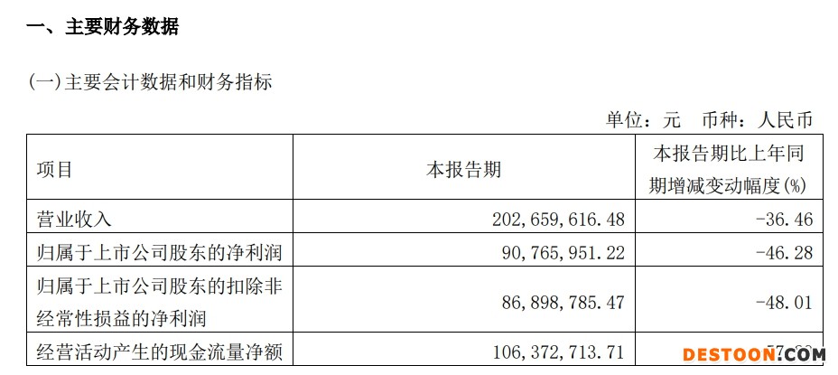 具体来看,2022年第一季度,科前生物营收和净利润双降。其中,营业收入为2.03亿元,同比回落36.46%;净利润为9076.60万元,同比回落46.28%。