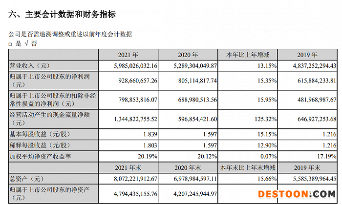 财报显示,2021年洽洽食品实现营业收入约59.85亿元,同比增加13.15%;归属于上市公司股东的净利润约9.29亿元,同比增加15.35%;基本每股收益1.839元,同比增加15.15%。