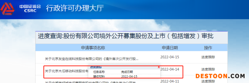 蓝鲸TMT频道4月18日讯,证监会信息显示,北京木瓜移动科技股份有限公司(以下简称“木瓜移动”)的《境外首次公开发行股份 ( 包括普通股、优先股等各类股票及股票的派生形式 ) 审批》已于近日获证监会接收材料。