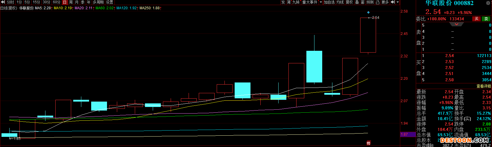 公开资料显示,华联股份主营业务为购物中心运营管理业务、影院运营管理业务和商业保理业务,最新数据显示,华联股份股东户数近10万户。最近两个交易日,华联股份出现连续两个涨停,截至今日收盘,股价报收2.54元/股。最近5个交易日,华联股份出现了3次涨停。