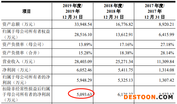 早在敏芯股份上市前,其扣非净利已经出现下滑。2019年,敏芯股份营业收入为2.84亿元,同比增长12.39%;归属于母公司所有者的净利润为5948.29万元,同比增长11.70%;扣除非经常性损益后归属于母公司所有者的净利润为5093.63万元,同比下降17.02%。