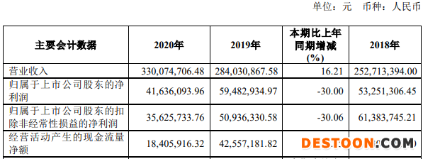 值得注意的是,这是敏芯股份上市后连续第二年业绩下滑。2020年,敏芯股份营业收入为3.30亿元,同比增长16.21%;归属于上市公司股东的净利润为4163.61万元,同比下降30.00%;归属于上市公司股东的扣除非经常性损益的净利润为3562.57万元,同比下降30.06%;经营活动产生的现金流量净额为1840.59万元,同比下降56.75%。