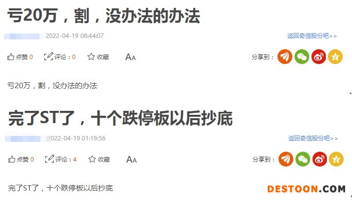 数据显示,截至去年9月30日,该股仍有1.9万户股东。股吧中有网友表示,亏20万,割,没办法的办法。还有的表示,完了ST了,十个跌停板以后抄底。