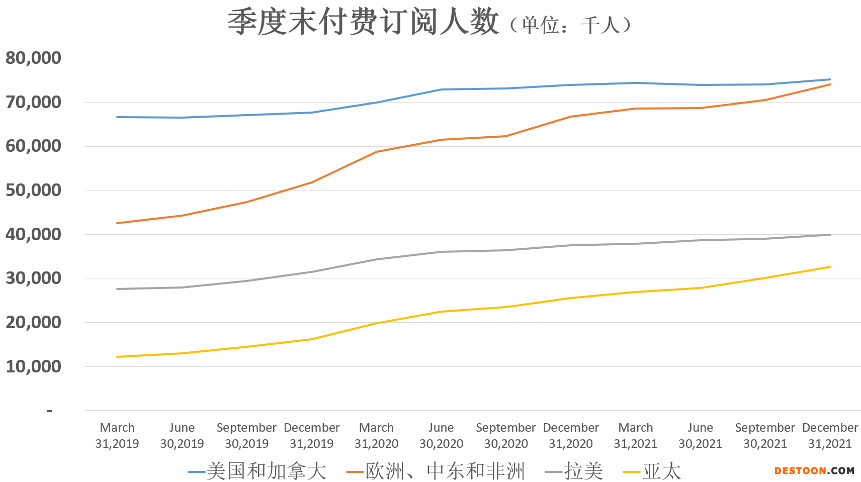 (各地区季度末订阅用户人数,来源:公司官网)