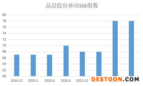 图:晶晨股份和讯SGI指数综合评分,数据来自各季度财报