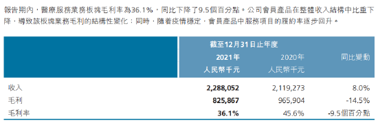 医疗服务业务板块毛利率大降9.5%