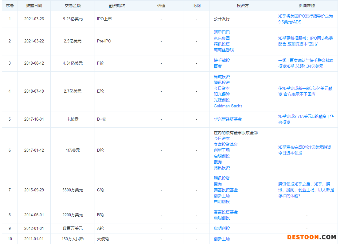 4月11日,知乎向港交所递交招股书,预计4月22日在港交所上市交易,公开发售价不超过每股32.06港元,瑞信、摩根大通、中金、招银为承销商。