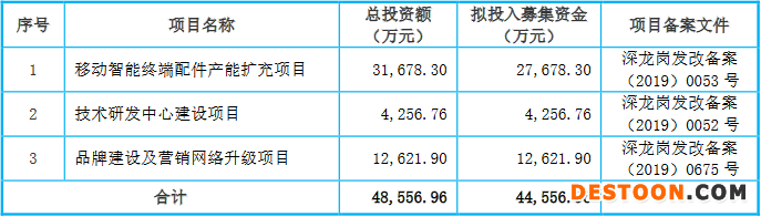 杰美特本次募集资金总额为13.20亿元,扣除发行费用后,募集资金净额为11.90亿元。杰美特最终募集资金净额比原计划多7.44亿元。杰美特于2020年8月14日披露的招股说明书显示,该公司拟募集资金4.46亿元,拟分别用于移动智能终端配件产能扩充项目、技术研发中心建设项目和品牌建设及营销网络升级项目。
