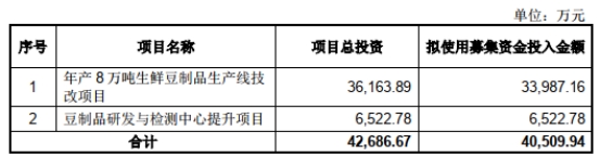祖名股份本次募集资金总额为4.74亿元,扣除发行费用后,募集资金净额为4.05亿元,其中,3.40亿元用于年产8万吨生鲜豆制品生产线技改项目,6522.78万元用于豆制品研发与检测中心提升项目。