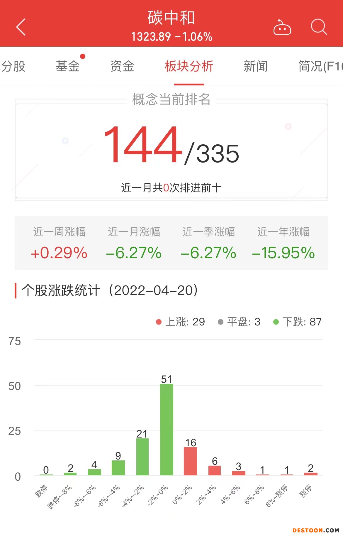 中国经济网北京4月20日讯 今日,碳中和板块整体跌幅1.06%,其中29只股票上涨,3只股票平盘,87只股票下跌。